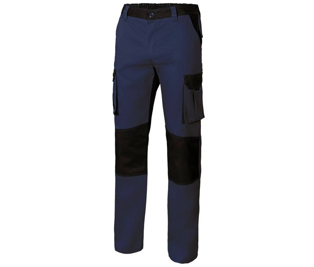 Zapięcie na guziki i rozporek na suwak. Wzmocniony materiał z tyłu. Wzmocnienie na kolanach. Elastyczny pas. Podwójny szew bezpieczeństwa. Kontrastujące szwy, klapy kieszeni i wstawki na kolanach. 6 kieszeni: 2 kieszenie boczne, 2 kieszenie boczne uda z patkami, rzepem i zamkami oraz 2 tylne kieszenie z patką i rzepem.